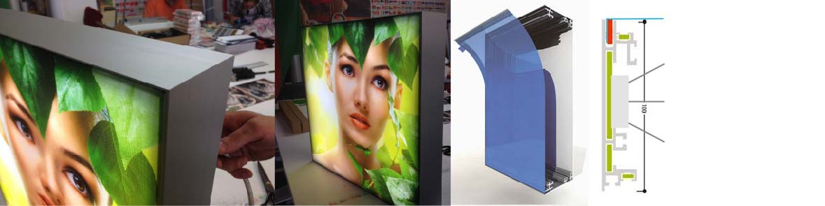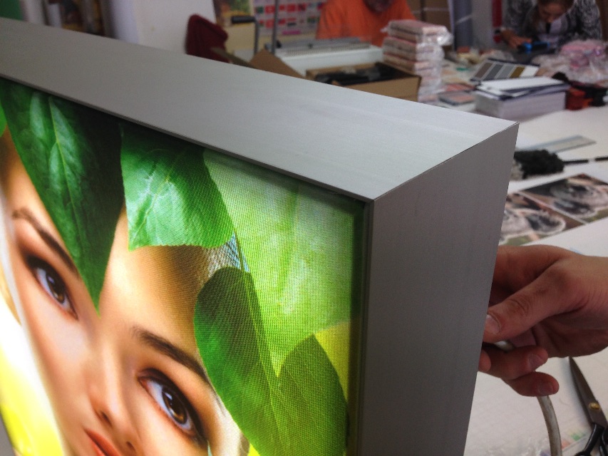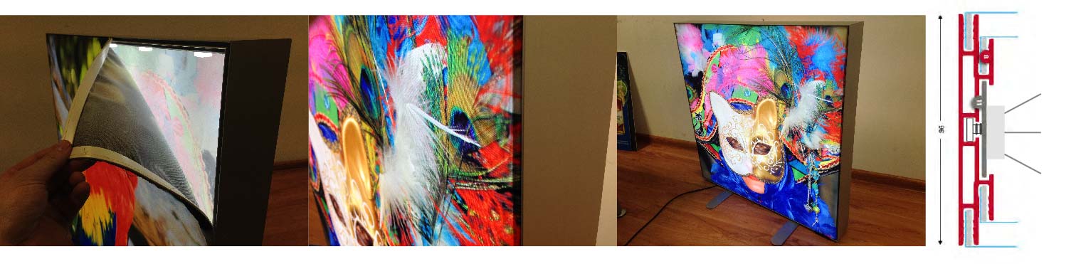 Эти лайтбоксы из текстиля имеют специальную систему профилей из анодированного алюминия для натягивания текстиля или ткани.